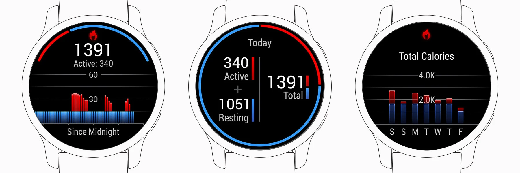 Z kolei kalorie aktywne to energia spalana podczas ruchu – zarówno przy lekkiej aktywności, jak spacer, jak i przy intensywnym treningu. Garmin oblicza je na podstawie danych o tętnie, poziomie intensywności, czasie ćwiczeń i indywidualnych parametrach użytkownika.